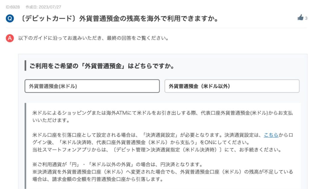 | 海外ショッピング 円決済 | 円 | 2.50% + 為替手数料(VISA/Mastercard) | 不可(推奨せず) | ドル建て口座活用で回避 |