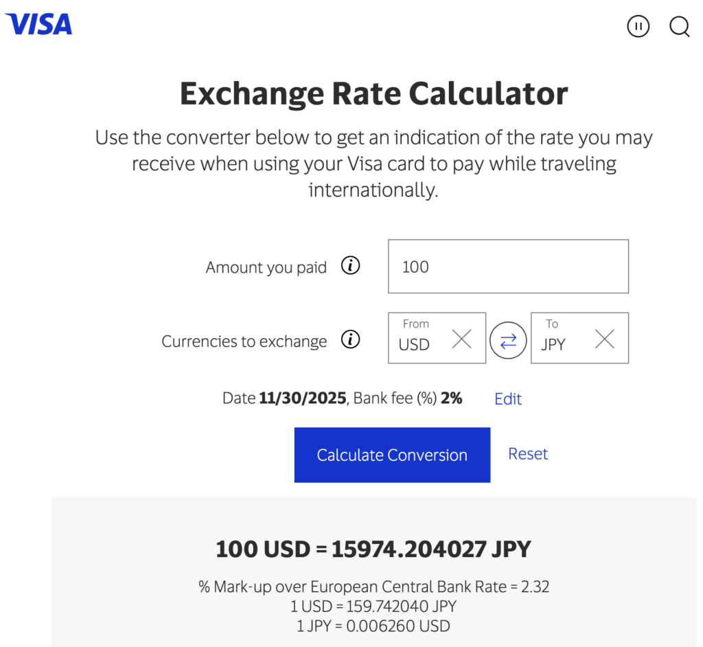 - 円決済の場合: Visa・Mastercardの為替レートで円換算後、**2.50%**の海外事務手数料がかかります。